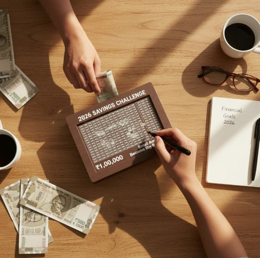 2026 New Year Savings Challenge Wooden Money Box – ₹1,00,000 Goal Tracker Piggy Bank